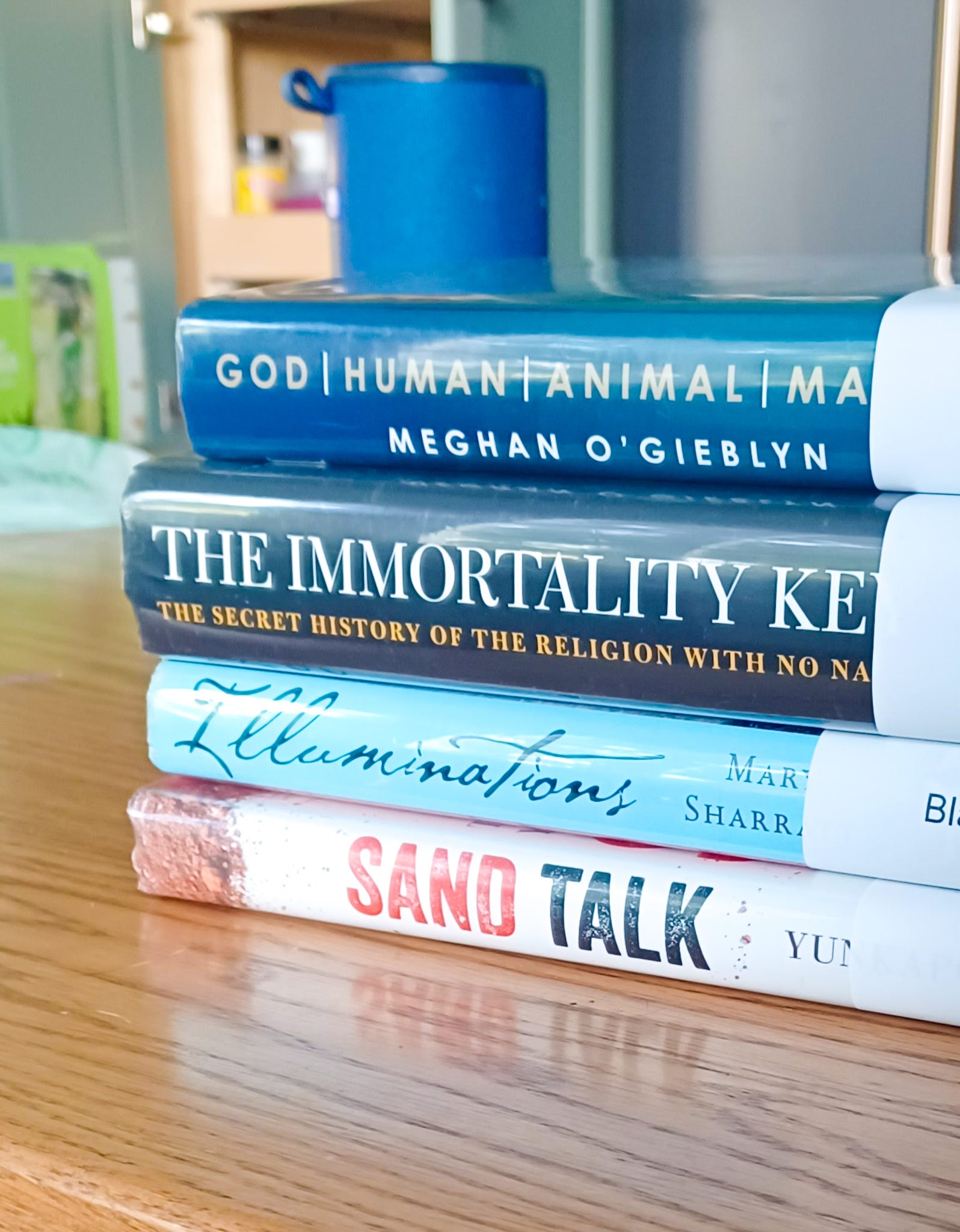 I’m really excited about the books that I have lined up to read as I’m researching for some longer writing projects. I’ll be reading about what we can learn about prehistoric goddess cults and their symbols (snakes! bees! fawns! water birds! bears!) from the archaeological record, ancient beekeeping practices, and where we find animistic thought and practice echoing down from history. I’ve already been learning so much that I can’t wait to share, and noticing how the synchronicities wash over me. This last year I have really been sitting with how acquisitive I am with books, in a way that is the case for no other category of material object, and so it feels correct to have my reading be guided by my writing projects, rather than tornado-ing through every book that interests me as I normally do.